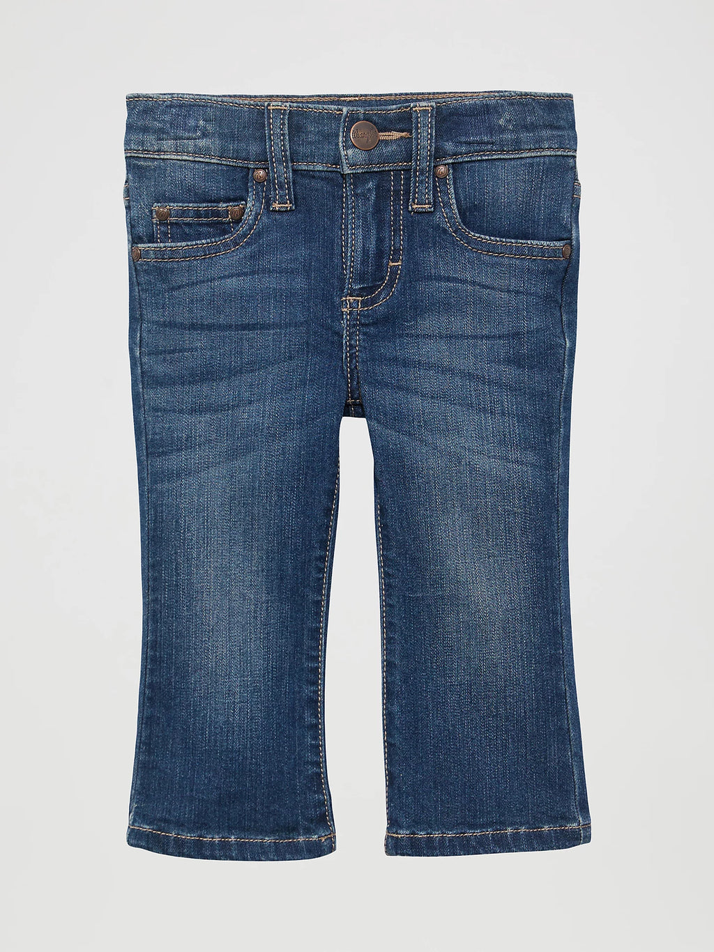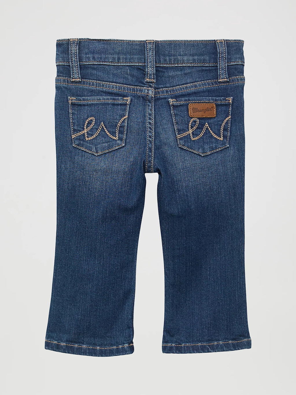 Classic Wrangler® bootcut jeans in a small-scale style made just for your baby girl. These skinny jeans for babies feature authentic 5-pocket styling, back pocket logo patch, and our signature 'W' stitching to give the jeans a look that stays true to our Western roots. Their stretchy denim fabric is perfect for keeping your baby comfortable as she figures out how to take her first steps.