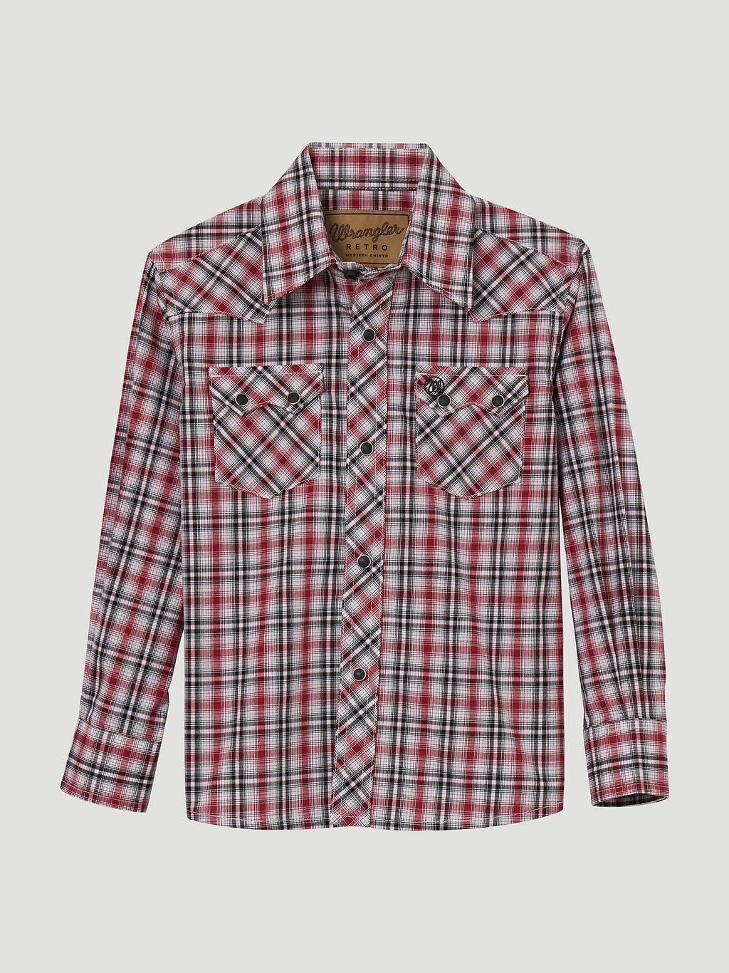 Boy's Wrangler 112344304 Retro Red/Black Plaid Western Snap Long Sleeve Shirt *CLOSEOUT*