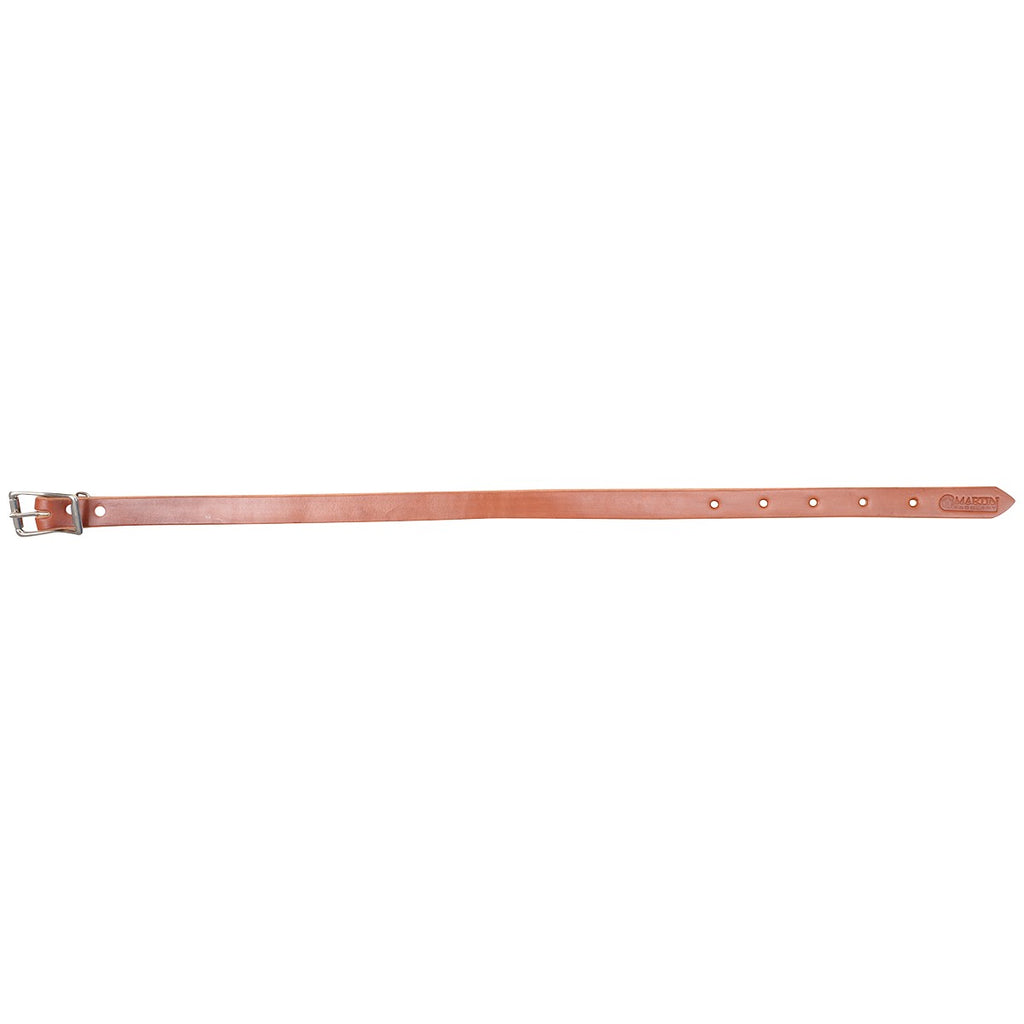 Our 32 inch long breastcollar tug of chestnut skirting features one clip and a buckle for adjustment purposes. 1 inch wide x 32 inch breastcollar tug. Martin Saddlery strap is hand-oiled and hand-finished the traditional cowboy way. Some variations in leather tones may occur.