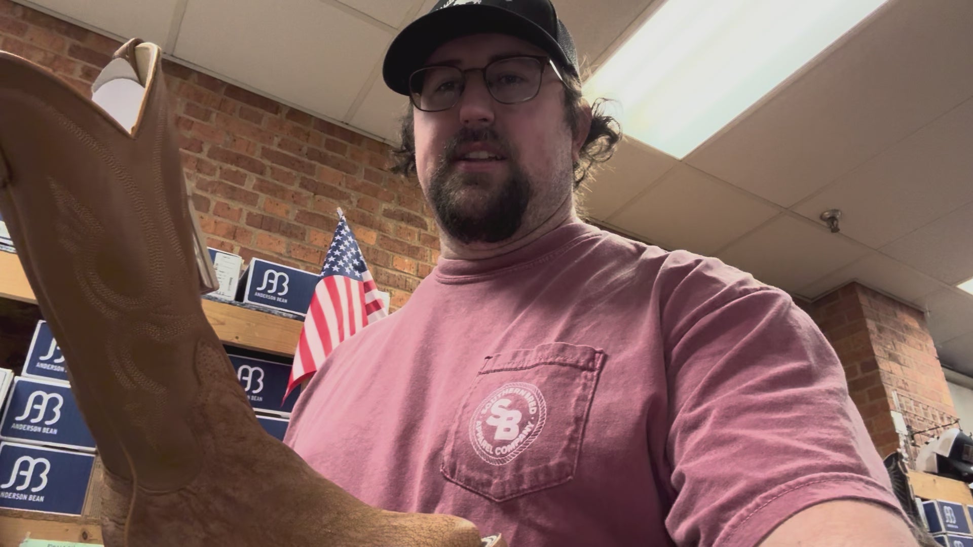 These Boots & More exclusive design boots are made of beautiful Peanut Poseidon Goat with 12 inch Tag Goat tops with matching pull tabs. They feature a square toe, cushion insoles, and walking heel. They have a tan hybrid leather/rubber outsole. These boots are hand made in Mercedes, Texas.