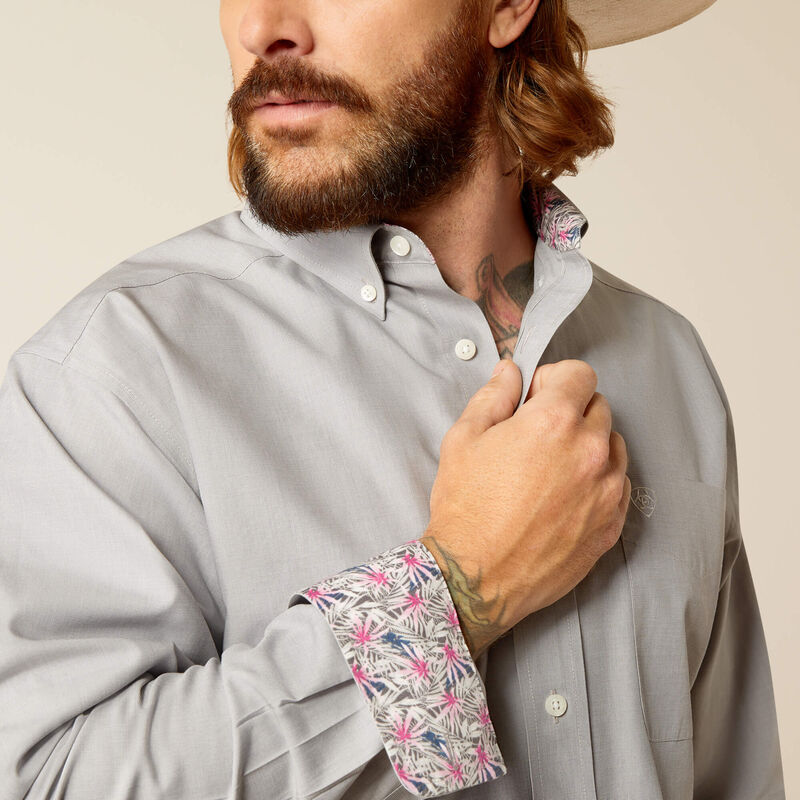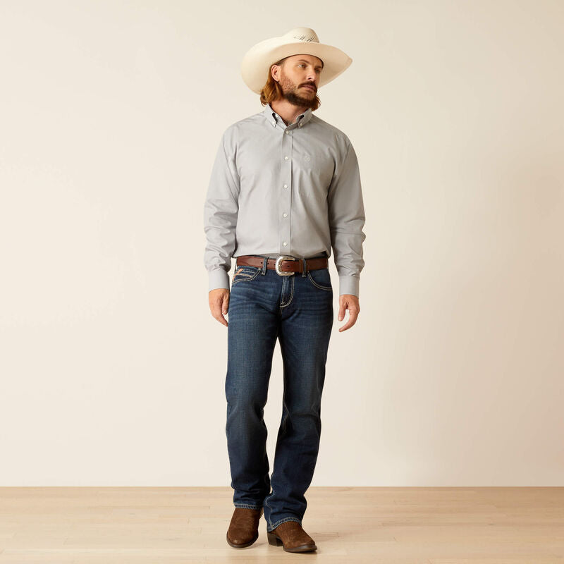 Men's Ariat Pinpoint Oxford Long Sleeve Shirt in Harbor Mist CLOSEOUT