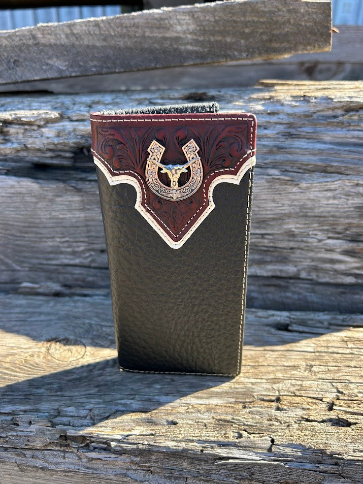 Top Notch Accessories Black Checkbook Wallet with Longhorn Concho