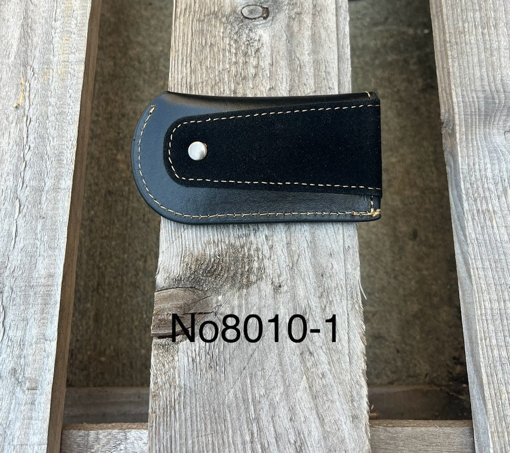 Made of high quality genuine leather, sheath is approximately 4 1/2 inches long. This sheath features an embossed Praying Cowboy design and a leather belt attachment.