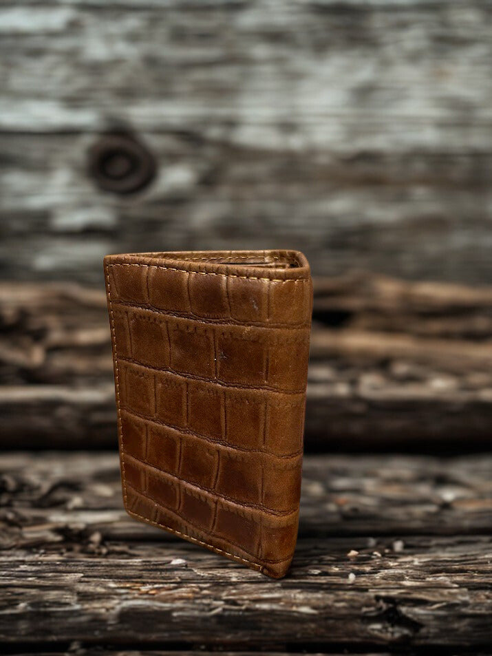 Top Notch Accessories Brown Alligator Print Leather Trifold Wallet with Rooster Concho