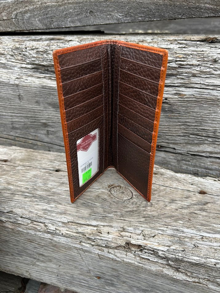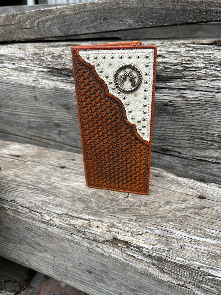 Top Notch Accessories Brown Basketweave Leather Tall Wallet with Pistols Concho