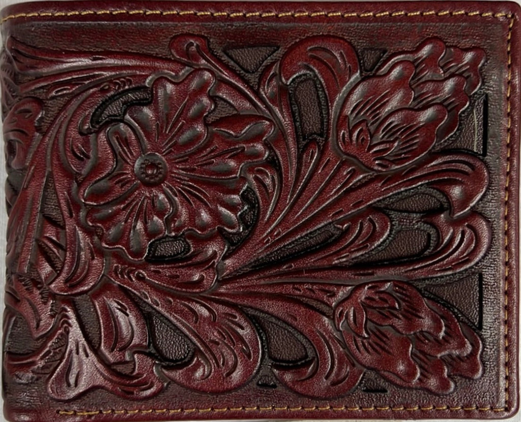 Top Notch Accessories Brown Floral Tooled w/Brown Inlay Bi-Fold Wallet