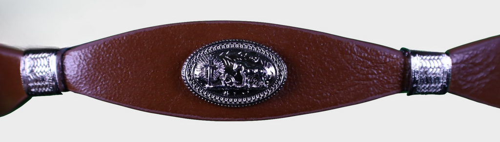 Top Notch Accessories Brown Leather Hat Band with Praying Cowboy Concho