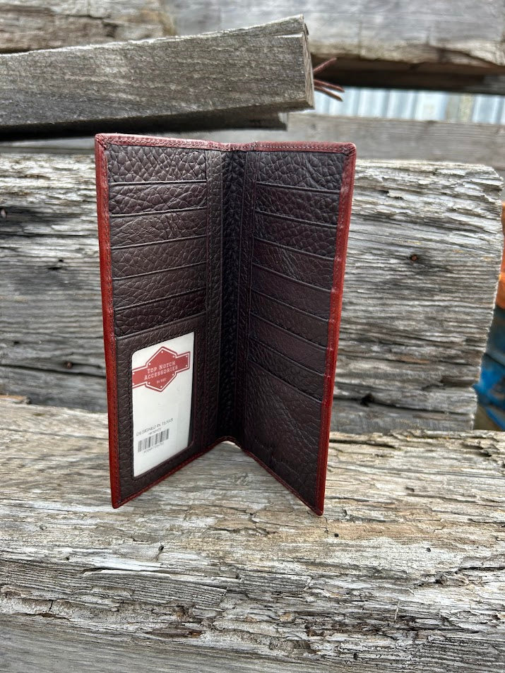 Top Notch Accessories Coffee Brown Basketweave Leather Wallet with Longhorn Concho