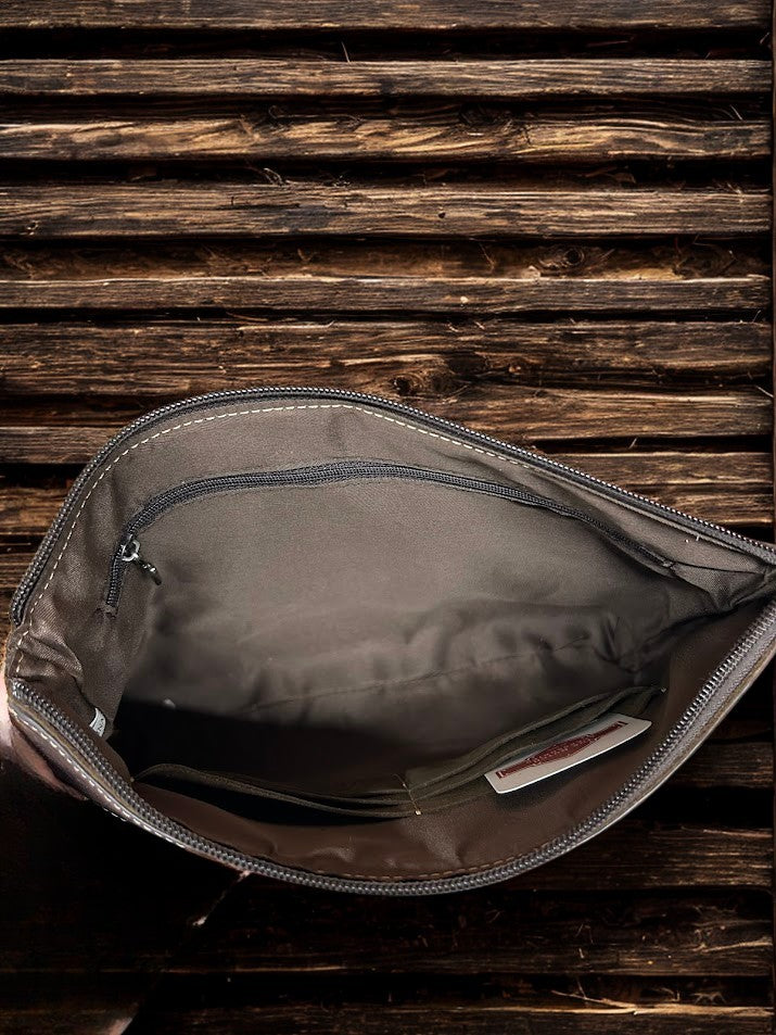 Top Notch Accessories Coffee Brown Tooled Leather and Cowhide Purse