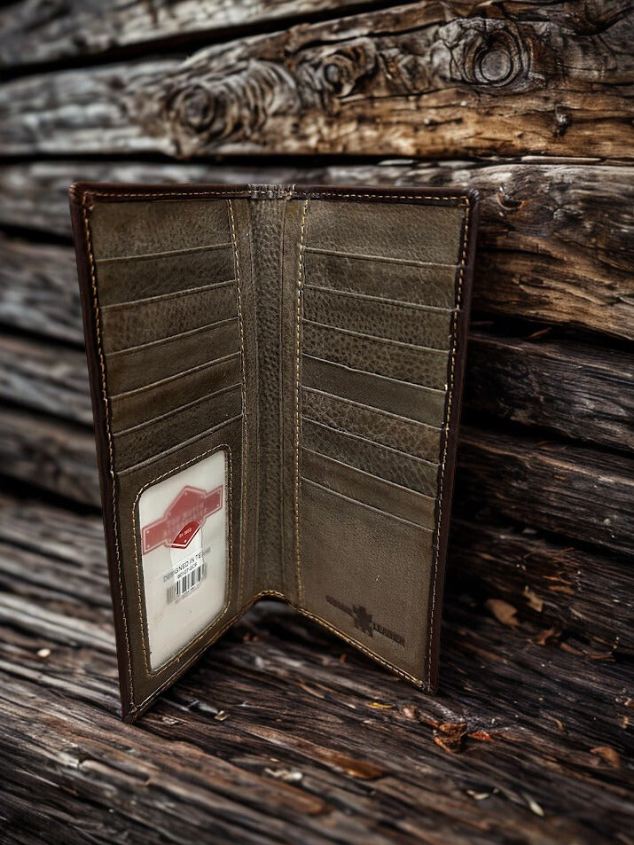Top Notch Accessories Coffee Brown Tooled Leather Tall Wallet with Turquoise Inlay