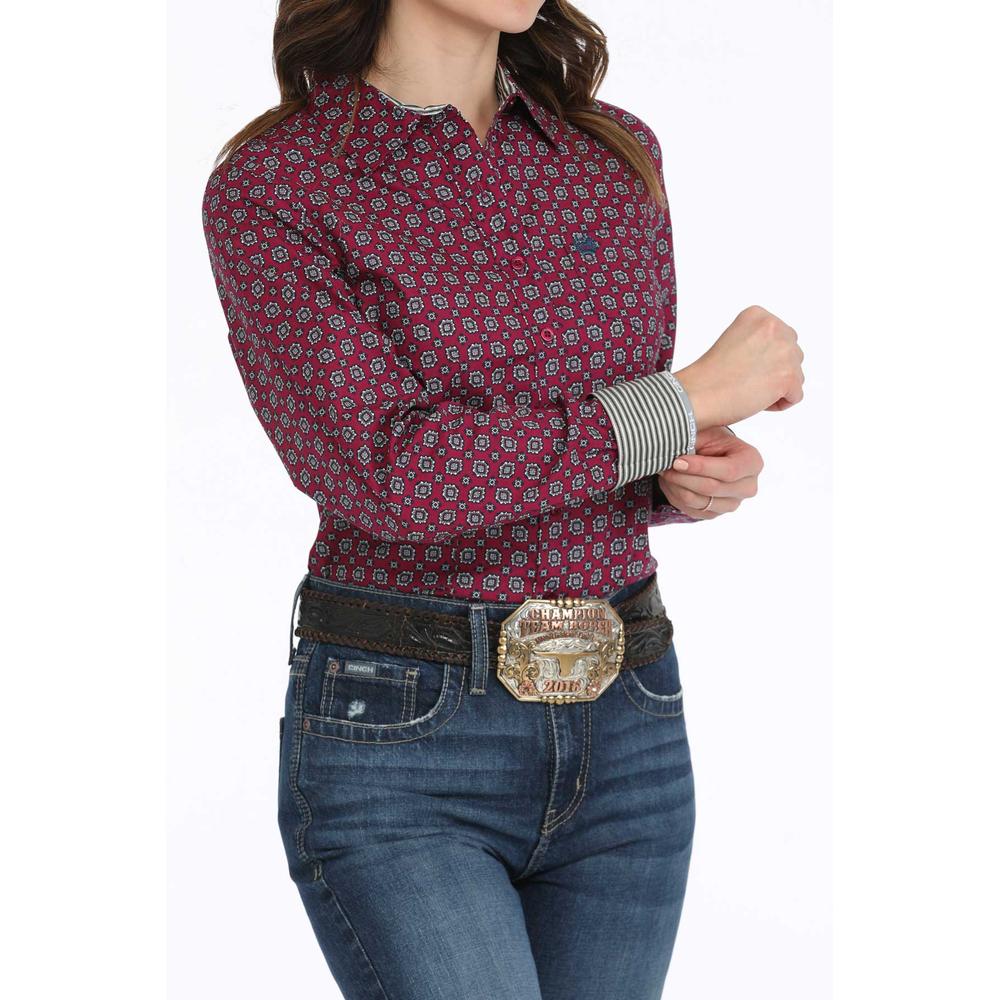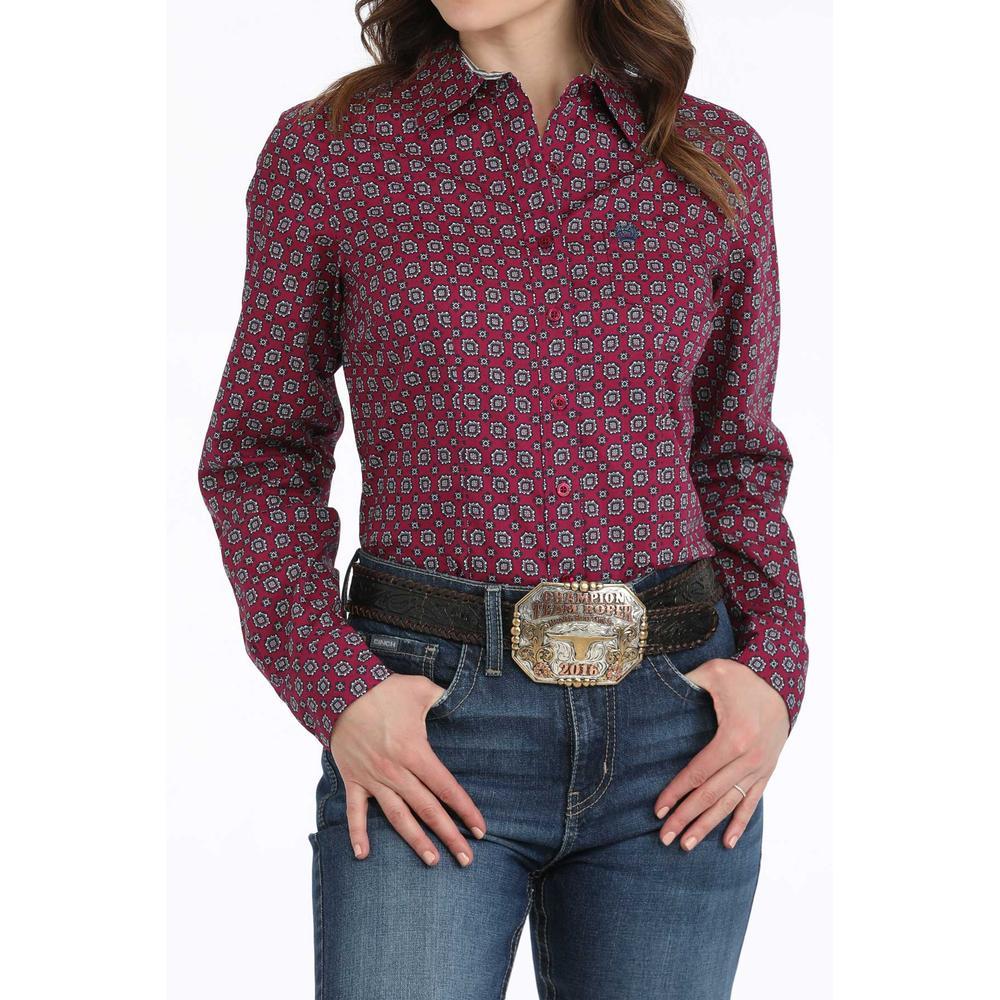 Women's Cinch Burgundy Print Button Long Sleeve Western Shirt DISCONTINUED