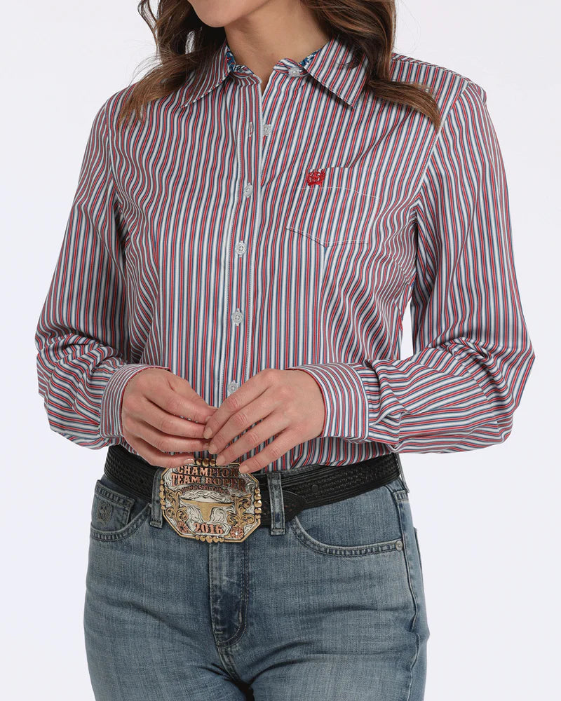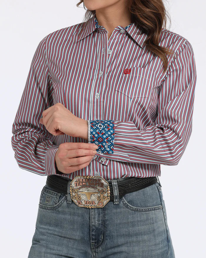 Women's Cinch Red and Blue Stripe Button Front Western Shirt DISCONTINUED