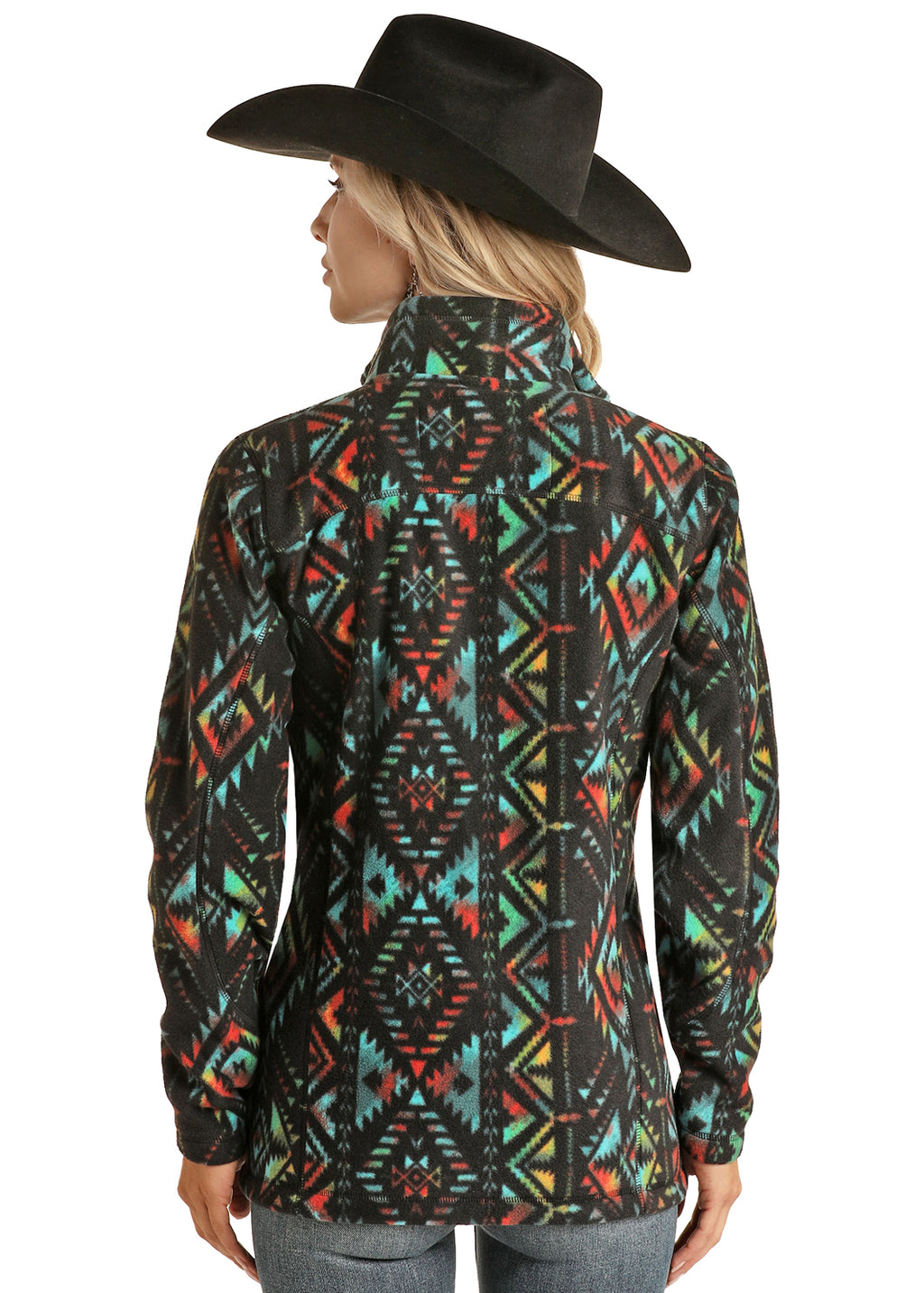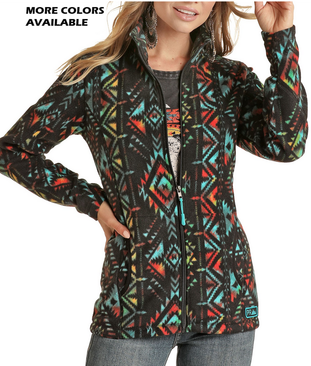 Women's Powder River by Panhandle Turquoise Aztec Print Fleece Front Zip Jacket FINAL SALE